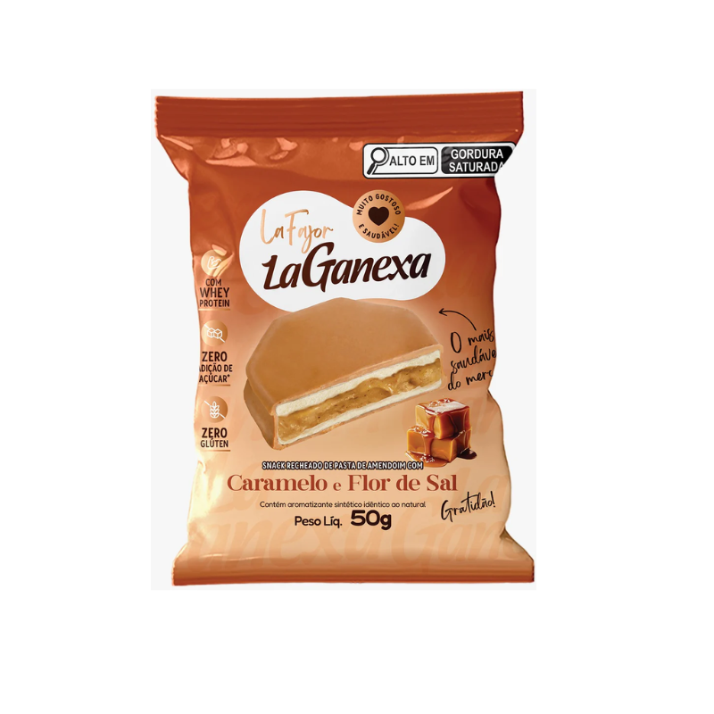 Maltitol, gordura vegetal, pasta de amendoim sabor caramelo salgado La Ganexa, leite desnatado em pó, amido de mandioca, farinha de arroz, polidextrose, soro de leite em pó, cacau em pó, sal, emulsificantes lecitina de soja e polirricinoleato de poliglicerol, aromatizantes, espessante goma xantana e edulcorante stevia.